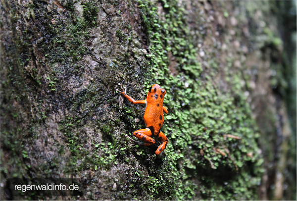 den kleinen roten Fröschen erhielt, die als Erdbeer-Pfeilgiftfrösche bekannt sind und den Wald in der Nähe des