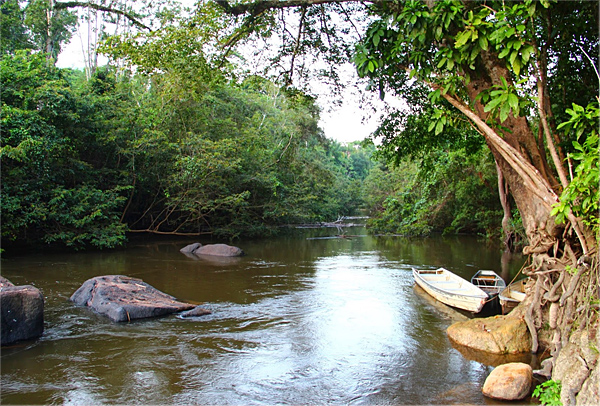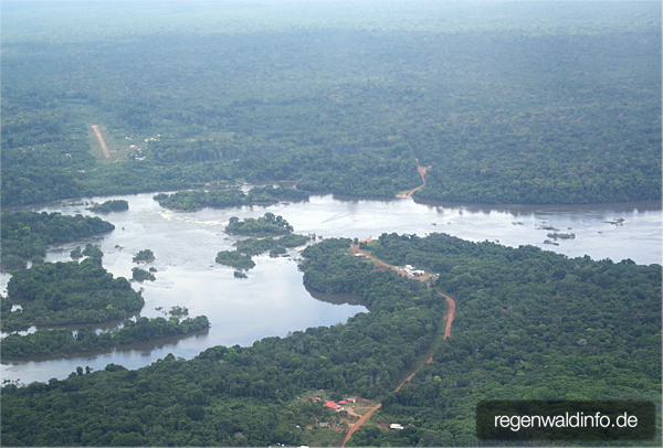 liegen die Savannen und im Norden der Siparuni-Fluss. Direkt durch die Mitte des Waldes fließt der
