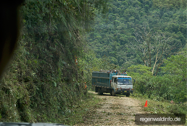 über den Inambari-Fluss nach Puerto Carlos (7 min), um dann wieder auf der Straße (30 km) weiter bis zur Stadt