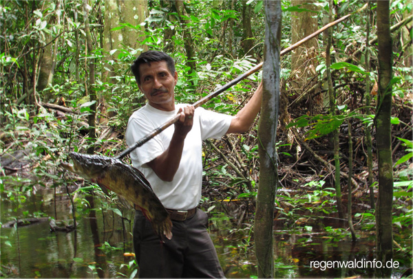vergraben. Komm her!" Wir schrecken aber nur einen Baby-Kaiman auf, der schnell davon schwimmt. Wir rasten auf