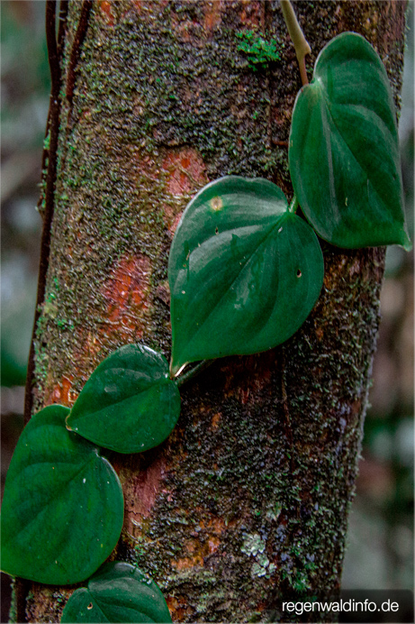 mich abstütze. Wir stapfen weiter, erschöpft und triefend. Ich habe meine Lektion gelernt. Der Regenwald ist