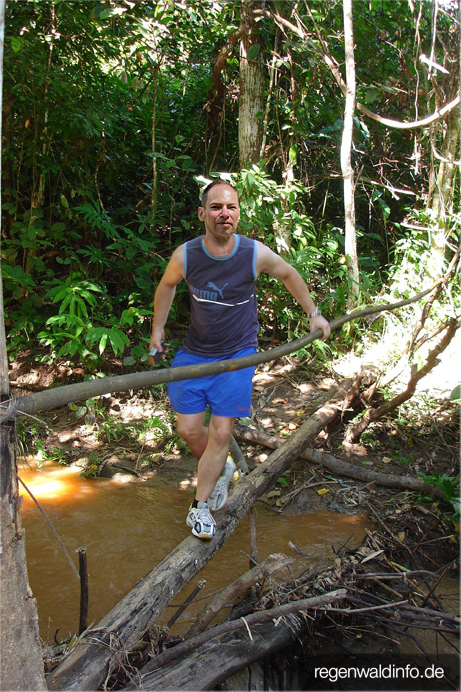 unter Ästen hindurch ducken, verfängt sich ein Schuh in einer Lianenschlinge, ritzen Dornen die Haut. Der