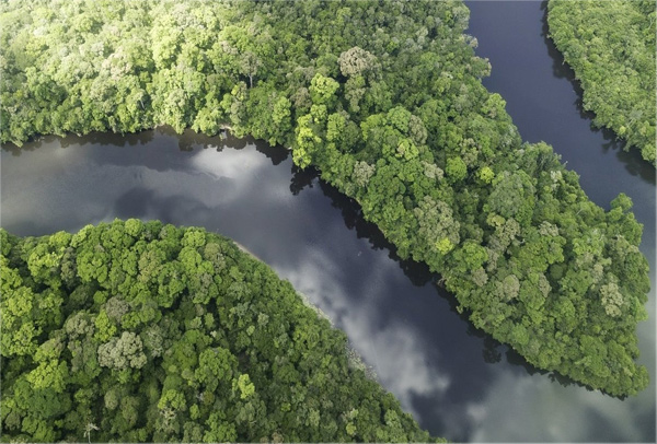 Regenwald, der noch fast das ganze Land bedeckt, durchzogen vom Rupununi mit seinen Uferwäldern und