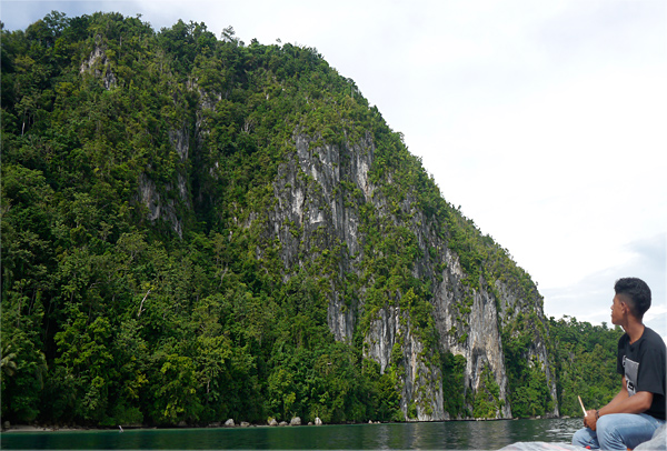 Zum Auftakt der Trekkingtour ging es zunächst mit dem Boot nach Sawai, wo prächtige Kalkfelsen ins Meer ragen.