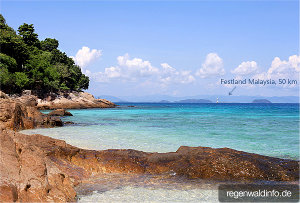 Auf die Insel kommt man mit einer Fähre, der "Bluewater Ferry", vom Hafen der Stadt Mersing. Es gibt saisonal